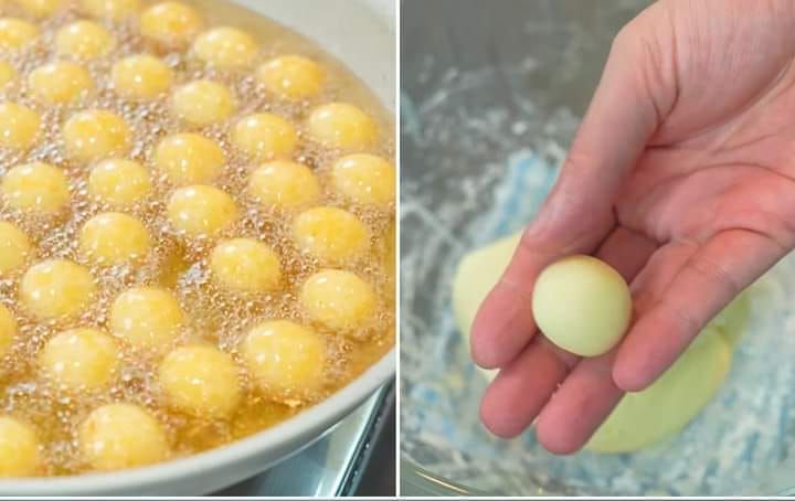 - Fríe las bolitas en una sartén con abundante aceite caliente hasta que estén doradas.