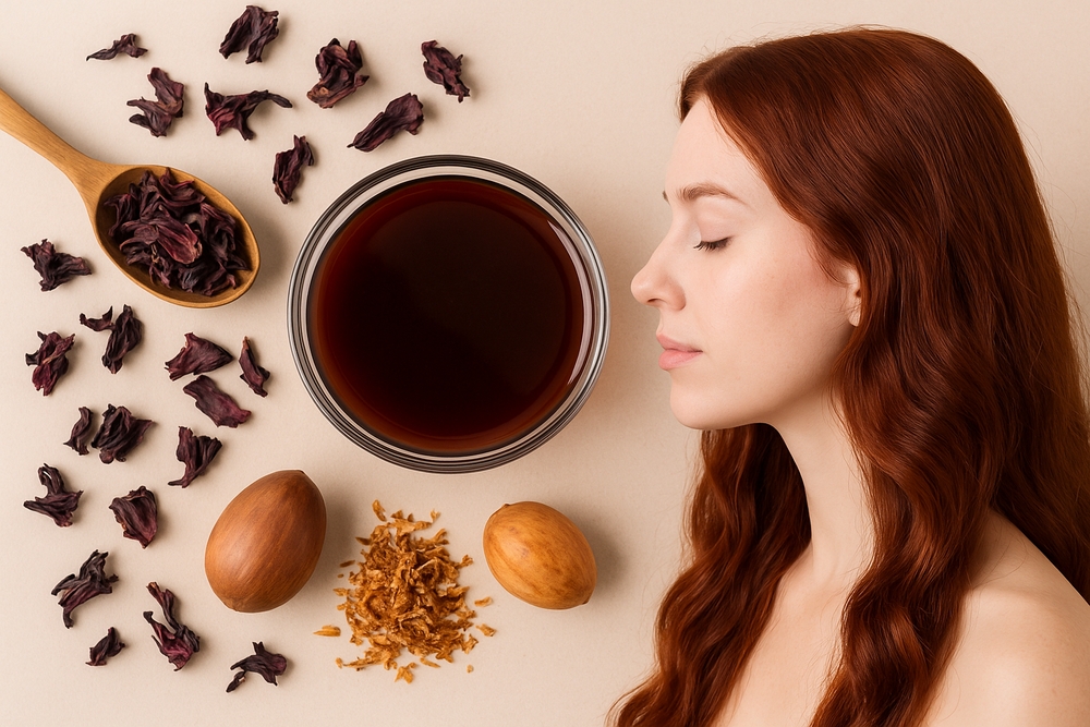 • 🔹 La flor de Jamaica da tonos rojizos, así que si tu base es clara se notará más el cambio. En cabellos oscuros aporta un brillo rojizo muy sutil.