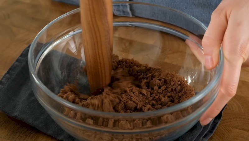 Tritura las galletas de chocolate y colócalas en el fondo de los vasitos. Vierte la crema de chocolate sobre las galletas en cada vasito.