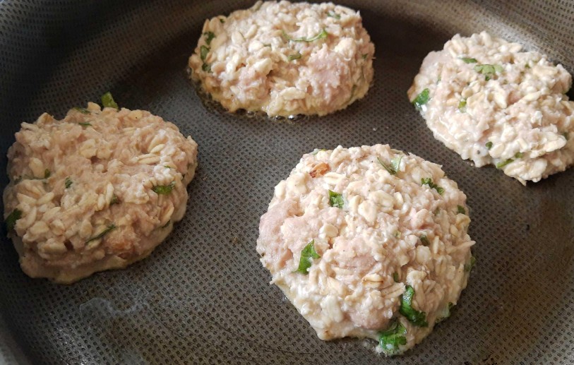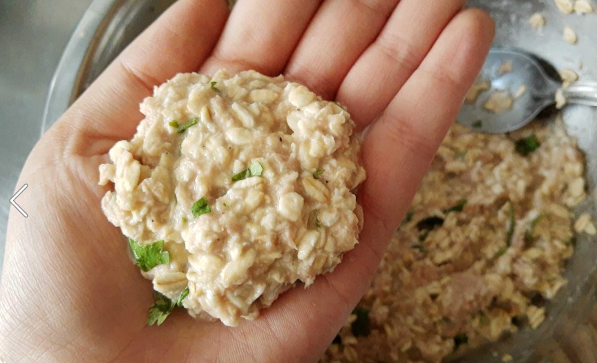 ✅ Paso 4: Rocía tus manos con un poco de aceite en aerosol y forma tortitas con la mezcla, presionando ligeramente para que queden delgadas.