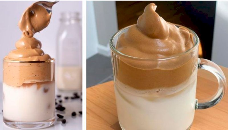 6. Finalmente, coloca la mezcla de café Dalgona encima de la leche caliente o fría.