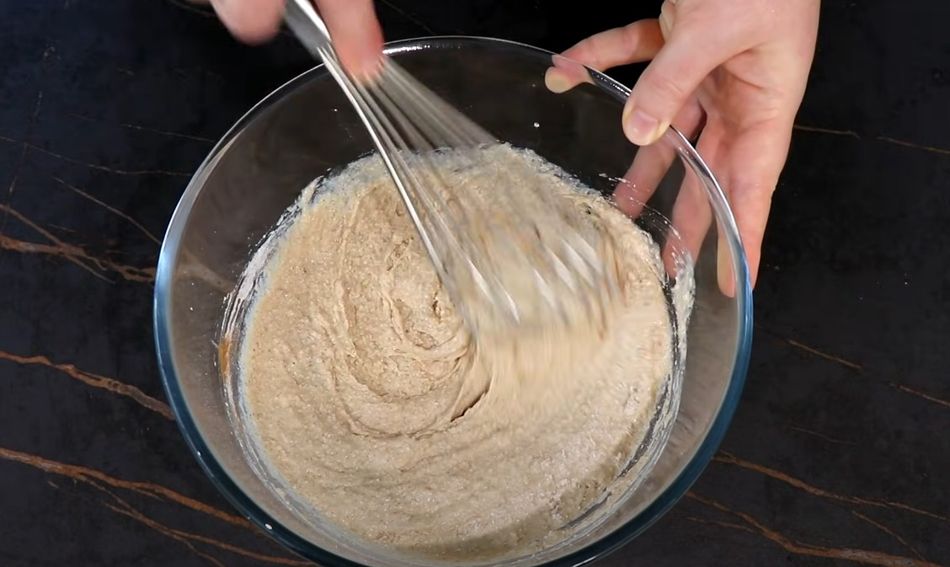 🟦 3. Bate bien hasta obtener una masa suave. Si está muy espesa, añade un poco más de leche hasta que tenga la consistencia de mezcla para pancakes.