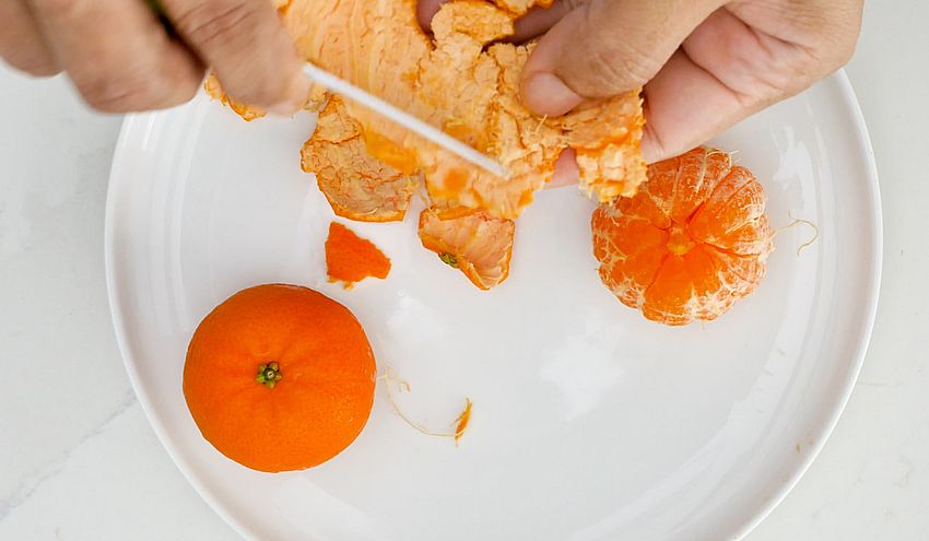 -En primer lugar, lava minuciosamente las mandarinas para eliminar cualquier impureza. Con la ayuda de un pelador, retira la cáscara teniendo cuidado de tomar solo la parte naranja y evitar la parte blanca.
