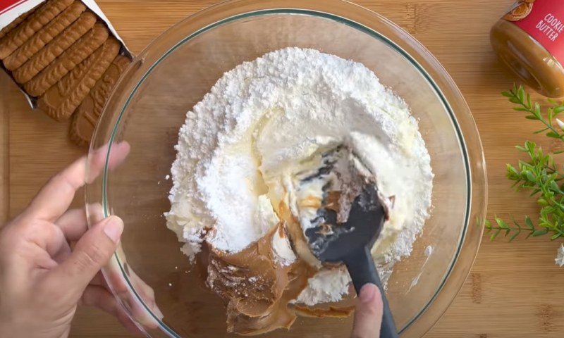 - Incorpora la pasta de galletas Biscoff y el extracto de vainilla hasta obtener una mezcla uniforme.