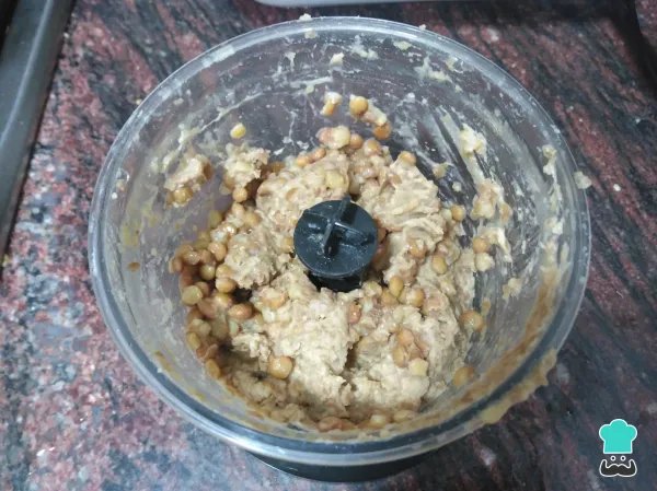 -Tritura las lentejas en una batidora eléctrica o con la túrmix, no es necesario que queden completamente hechas puré, solo machácalas un poco para lograr una textura cremosa. Reserva.