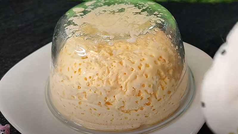 3️⃣ Cocción al baño maría: Vierte la mezcla en un molde resistente al calor y colócalo en una sartén con agua caliente. Tapa la sartén y cocina a fuego medio-alto durante 20 minutos, hasta que la tortilla esté esponjosa y firme en el centro.