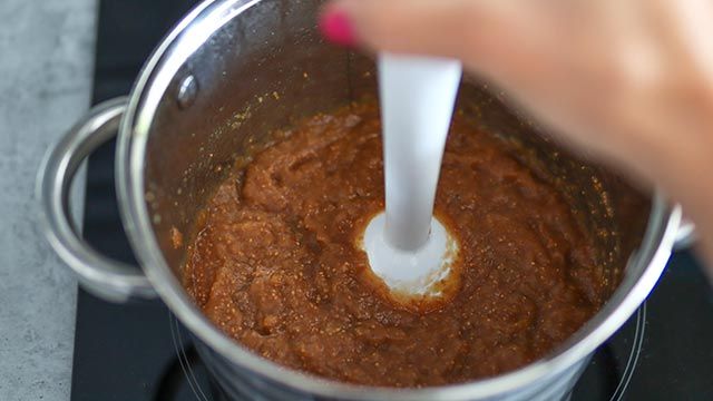 5- Cuando esté lista, apaga el fuego y con la ayuda de la batidora tritura un poco la mezcla. A continuación solo tienes que colocar la mermelada de higos en tarros de cristal e introducirlos en el frigorífico para servirla fría.