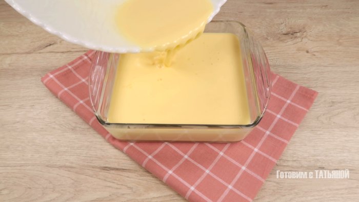 Vierta la mezcla de huevos y leche en el molde preparado.