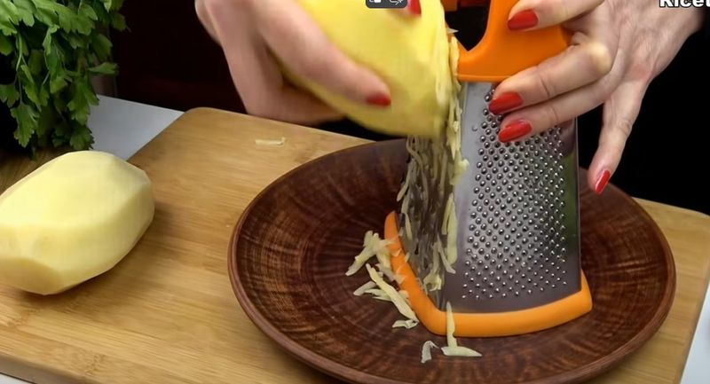-Pelar las patatas y rallarlas finamente con un rayador.