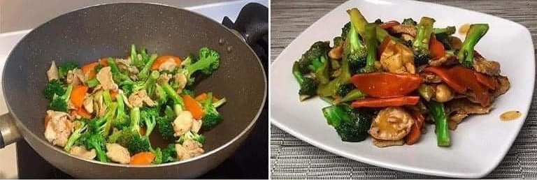 Calienta una sartén grande o wok a fuego medio-alto. Agrega el aceite de oliva y cocina las tiras de pollo hasta que estén doradas y bien cocidas. Retira el pollo de la sartén y reserva.