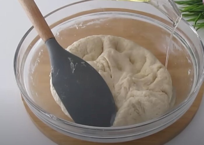- Forma una bola con la masa y luego vierte una cucharadita de aceite sobre ella. Asegúrate de engrasar bien la masa y las paredes del bol.