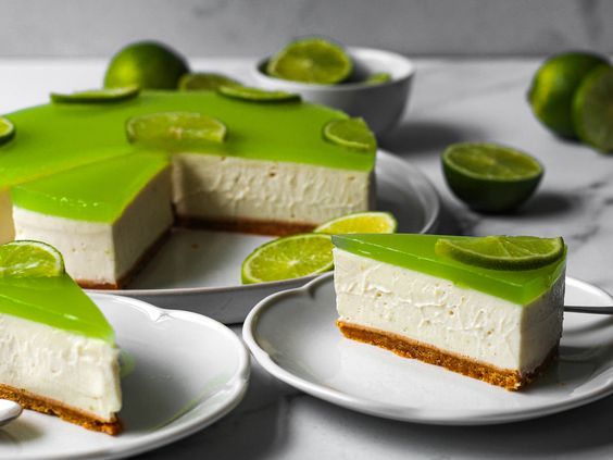 8. Antes de servir, no olvides desmoldar el bizcocho. Solo queda decorar el bizcocho de gelatina con lima, para ello puedes hacer rizos con rodajas finas de lima y agregar hojas de menta.