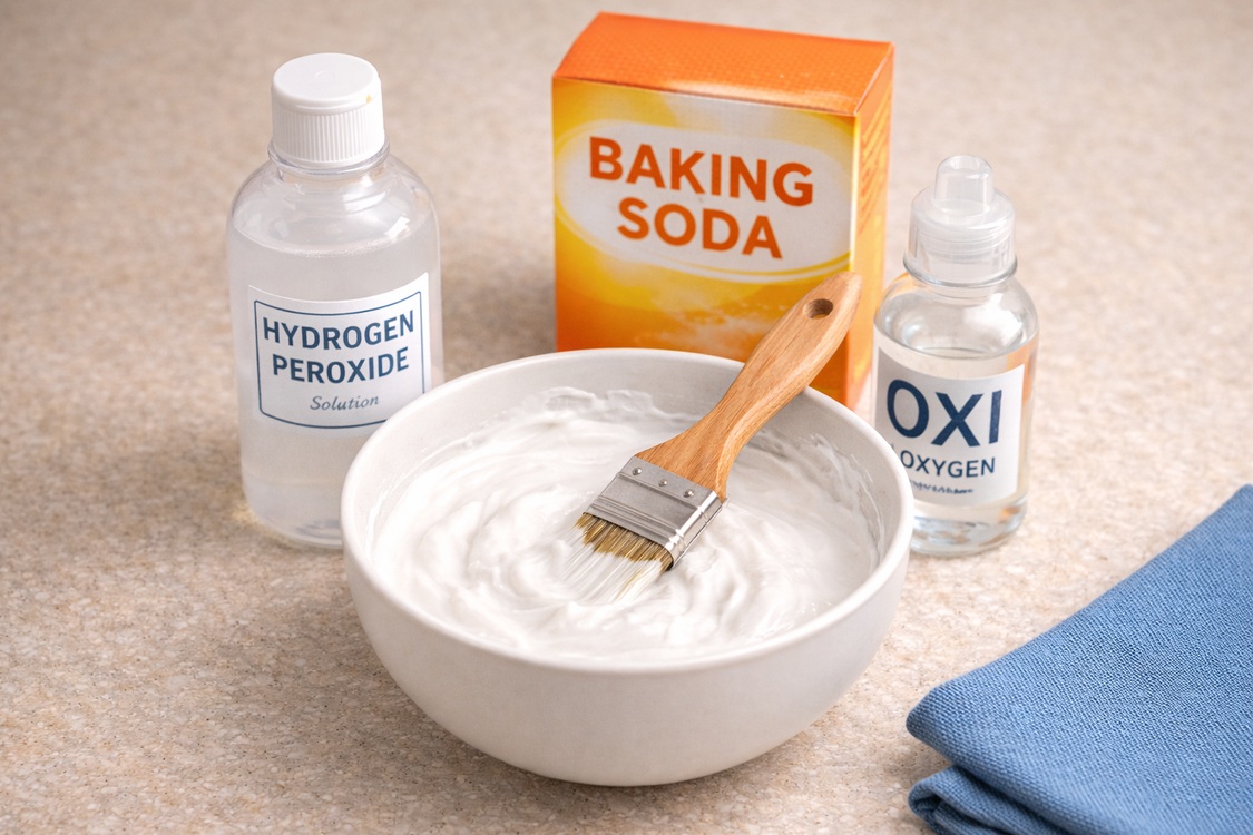 Si el amarillento es leve y parece ser solo suciedad o grasa, puedes probar primero una alternativa natural: mezcla bicarbonato con unas gotas de limón, frota suavemente, deja actuar 15–20 minutos y luego limpia.