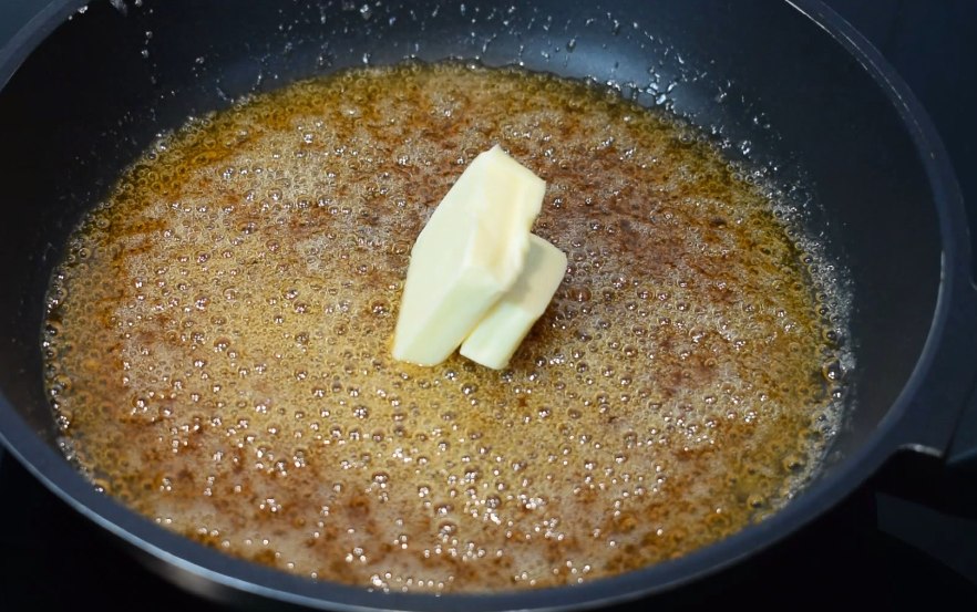 -En este momento agregamos la mantequilla a temperatura ambiente y la integramos moviendo la sartén, sin introducir nada para remover.