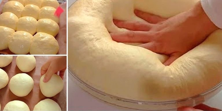 – Ponemos la masa sobre un mesón y la dividimos en trozos de unos 50 gramos, las colocamos en un molde engrasado o en una bandeja, y dejamos fermentar nuevamente por otros 30 minutos.