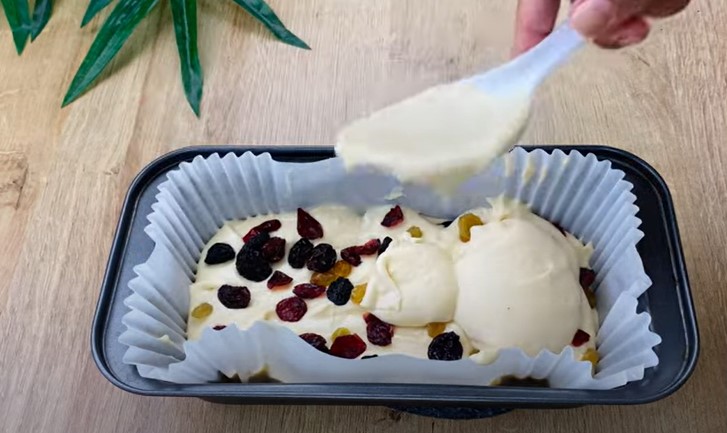 - Agrega las frutas a la masa y mezcla suavemente hasta que estén bien distribuidas. Puedes optar por una variedad de frutas, como pasas, ciruelas, albaricoques, manzanas, plátanos, según tus preferencias.