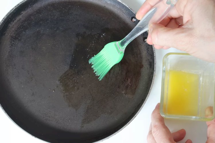 Para elaborar los crepes ya sabes, elige una sartén antiadherente, puedes engrasarla con mantequilla o con aceite de oliva. La primera crepe normalmente se desecha y sirve para que toda la sartén esté perfectamente engrasada y no se peguen las que se harán a continuación.