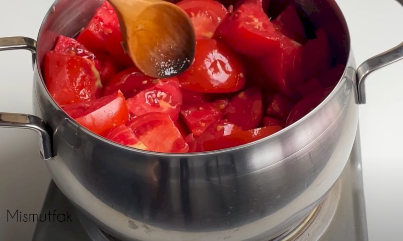 -Procede a cortar los tomates en rodajas y colócalos en una olla a fuego medio, dejándolos cocinar durante alrededor de 1 hora. Una vez que estén tiernos, procesa los tomates en el mismo recipiente con una licuadora de mano.