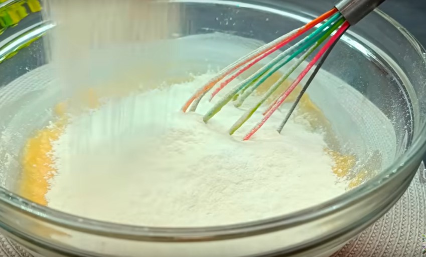 - Incorpora 380 g de harina y 10 g de levadura en polvo a la mezcla de huevo y azúcar. Amasa hasta obtener una masa suave y uniforme.