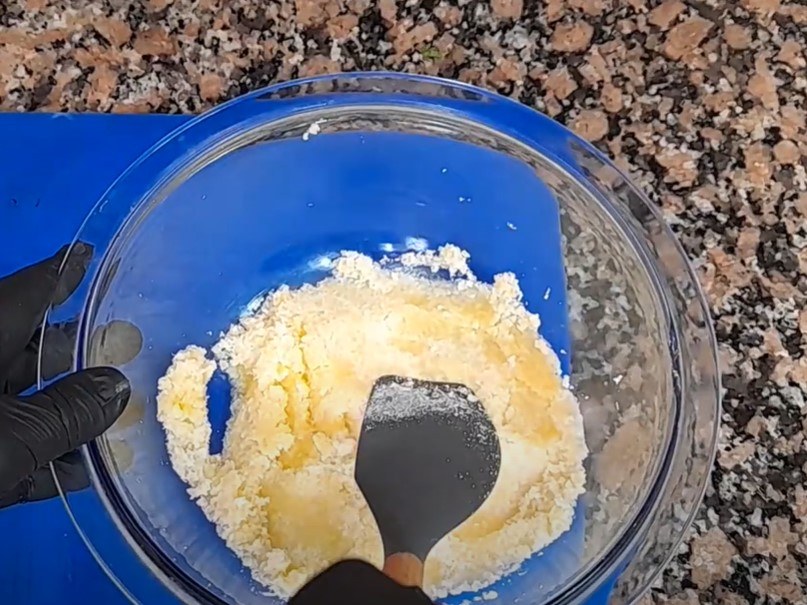 -Comenzamos a mezclar con nuestras manos hasta lograr una masa pastosa.