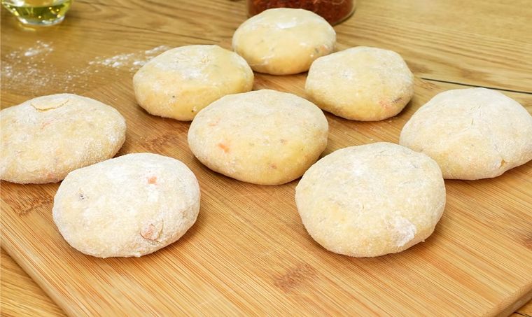 -Da forma a las croquetas: Con las manos ligeramente engrasadas con aceite, toma porciones de la mezcla y forma pequeñas croquetas o hamburguesas. Pásalas por harina para rebozarlas ligeramente.