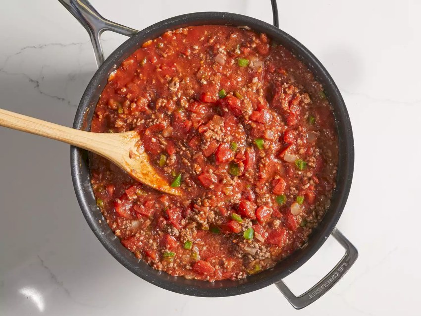 -Salsa de tomate: Vierte el tomate en su propio jugo sobre la mezcla de carne y vegetales, cubre con una tapa y cocina a fuego lento durante 10-15 minutos para que los sabores se mezclen a la perfección.