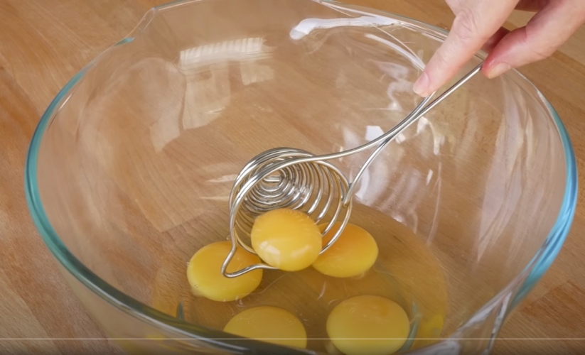 -En un bol mezclamos 3 huevos y 2 yemas, junto con 120 gramos de azúcar, hasta lograr una integración completa del azúcar.