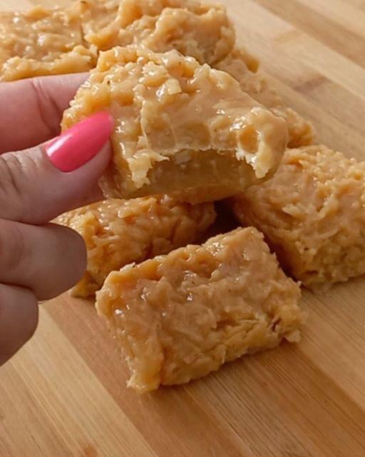 - ¡Sirve los trozos de caramelo de coco con leche condensada en un plato y disfruta de esta delicia!