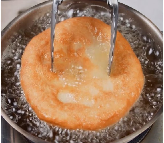 Calienta abundante aceite o grasa de vaca en una sartén profunda a fuego medio-alto. La temperatura del aceite es clave para que las tortas fritas se cocinen de manera uniforme y queden doradas y crujientes por fuera, y tiernas por dentro. Coloca con cuidado cada disco de masa en la sartén caliente y cocina de 2 a 3 minutos por lado, o hasta que estén doradas.