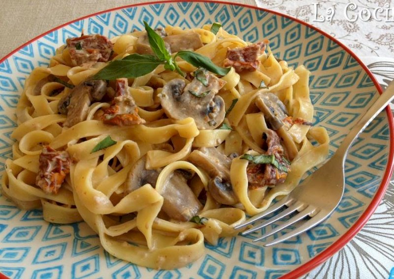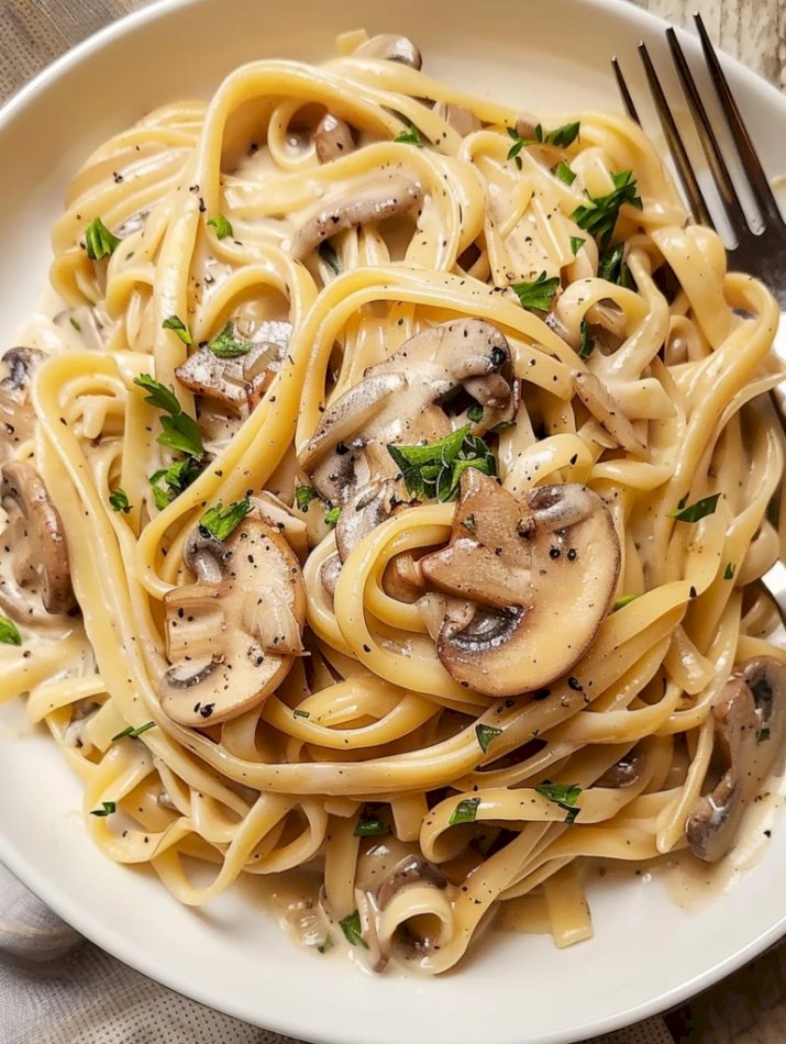 -Mezclar con la pasta: Agrega la pasta cocida a la sartén y revuelve para cubrir la pasta con la salsa cremosa de champiñones. Si la salsa está demasiado espesa, puedes agregar un chorrito de caldo vegetal o leche de almendras para obtener la consistencia deseada.