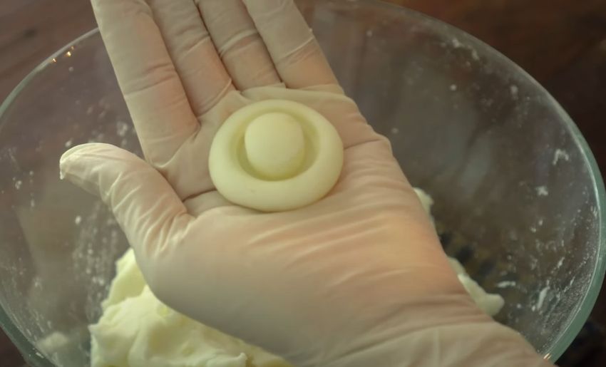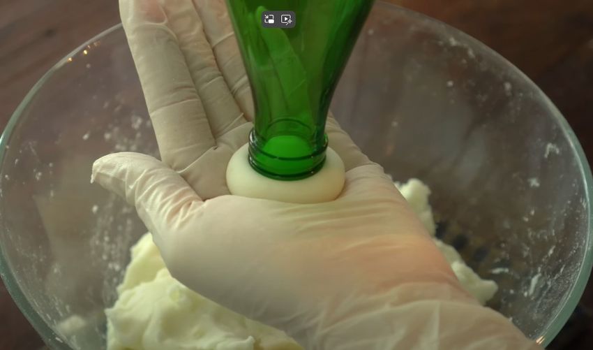 - Inserta una botella de vidrio en la bola de masa hasta que llegue al centro de la misma.