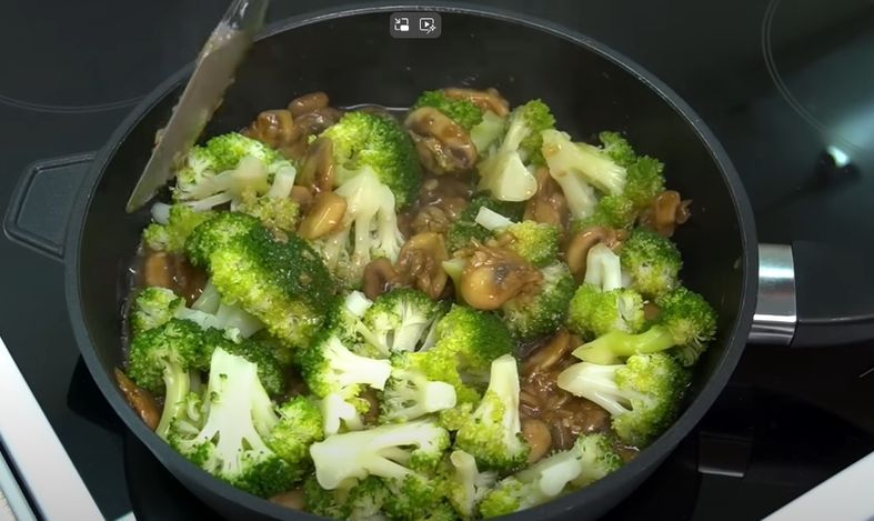 -Añade los floretes de brócoli cocidos a la sartén y mezcla todo suavemente para que se integren los sabores.