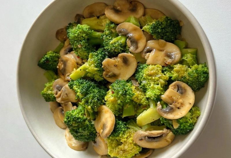 -Transfiere el brócoli y los champiñones al ajillo a un plato de servir.