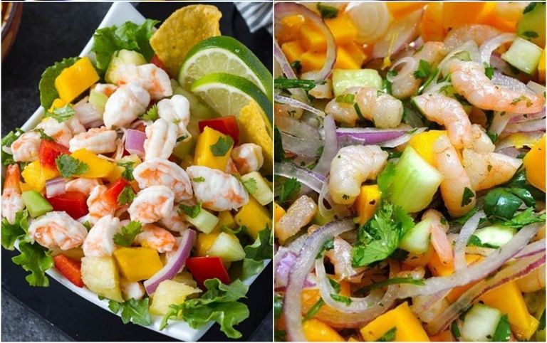 Aquí tienes una receta básica para preparar ceviche de camarón y mango: