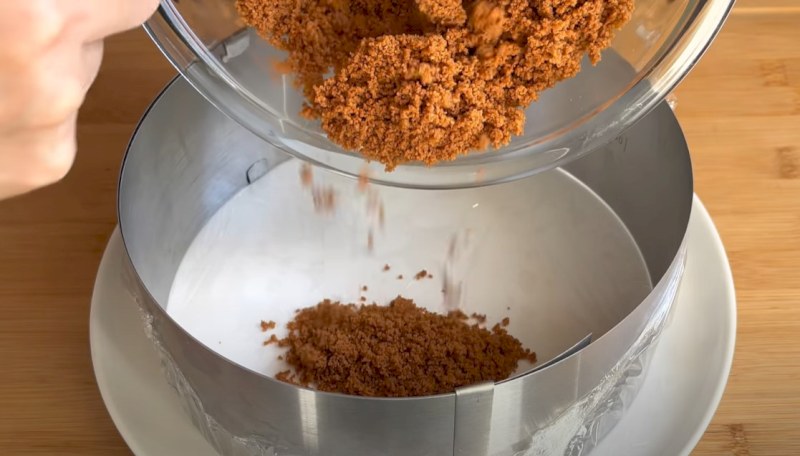 - Muele las galletas Biscoff hasta obtener migas finas.