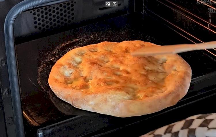 Divide la masa en 4 partes y déjala reposar durante 5 minutos. Estira cada trozo de masa, espolvoréalo con harina de maíz y vierte un poco de aceite de oliva. Hornea cada panqueque durante 5 a 7 minutos en un horno precalentado a temperatura máxima.