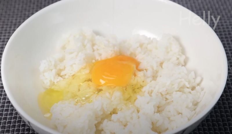 - Rompe 1 huevo en el arroz y mezcla bien para integrar los ingredientes.