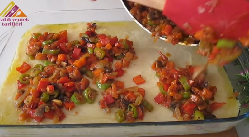 Una vez que tengas el queso extendido sobre los vegetales, lleva el molde al horno precalentado a 180 °C y déjalo por aproximadamente 20 minutos, tiempo tras el cual, estará perfectamente gratinado.