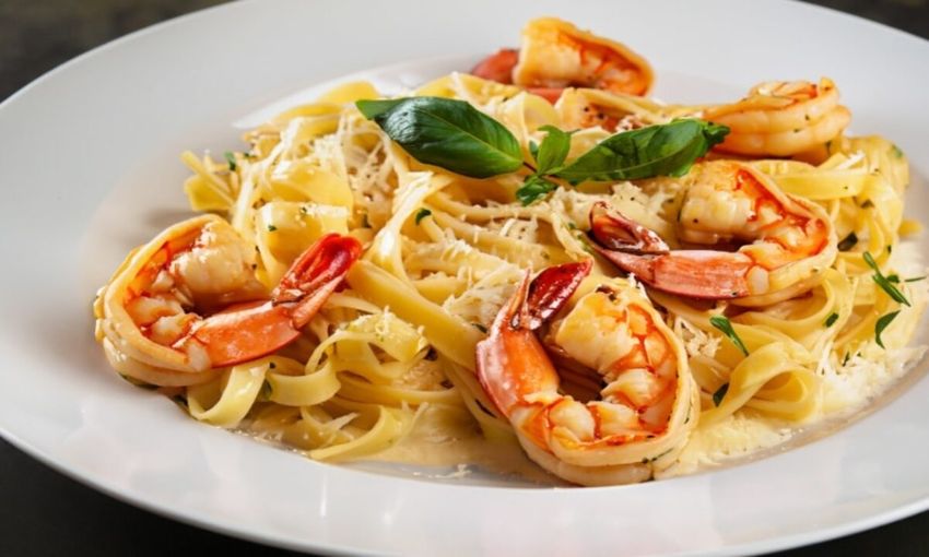 ¡Fettuccine con Camarones cremosos que te hará agua la boca!