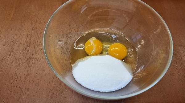 1.- Comenzamos blanqueando en un bol los huevos con el azúcar. Debemos conseguir que cambie de color hasta llegar a casi blanco y casi doble el volumen. Estaremos con la batidora de mano 3 o 4 minutos.