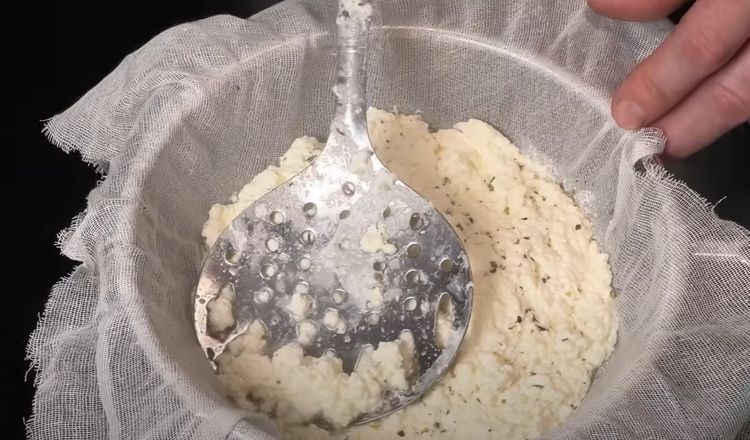 Colar el queso: Vierta la mezcla a través de un colador fino o un paño limpio (como un paño de cocina o una gasa) colocado sobre un bol para separar el suero de la cuajada. Déjalo escurrir unos minutos, presionando suavemente para eliminar el exceso de líquido, pero sin comprimir demasiado para que el queso mantenga una textura suave.