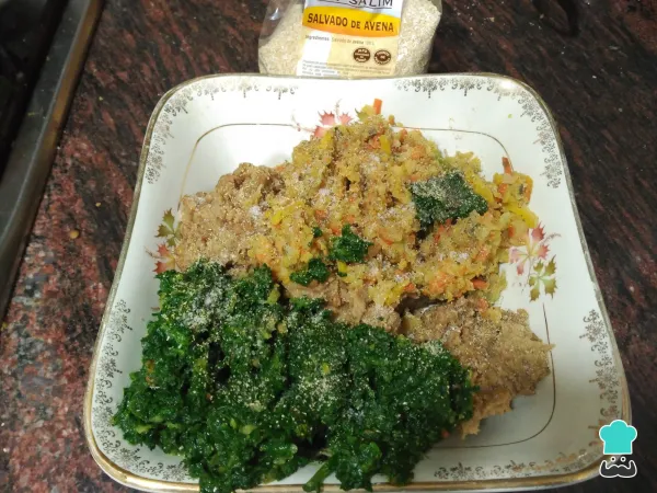 -Mezcla todo con unos guantes de cocina y agrega el salvado de avena (o pan rallado) hasta obtener una masa espesa y compacta.