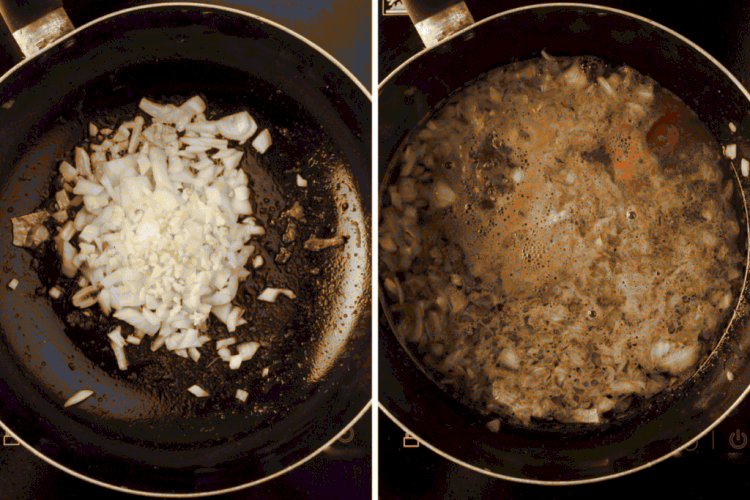 -Cuando la cebolla esté transparente, incorpora el ron y deja que el alcohol se evapore por completo.