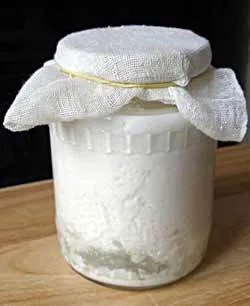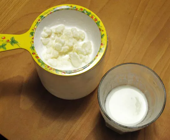 -Para preparar el kéfir de leche casero necesitarás conseguir algunos nódulos de kéfir, no importa la cantidad porque si los conservas adecuadamente crecerán. Introdúcelos en un tarro de cristal o plástico. Es muy importante que los utensilios de cocina que uses no sean de metal ni aluminio, puesto que dañarían las propiedades del hongo.
