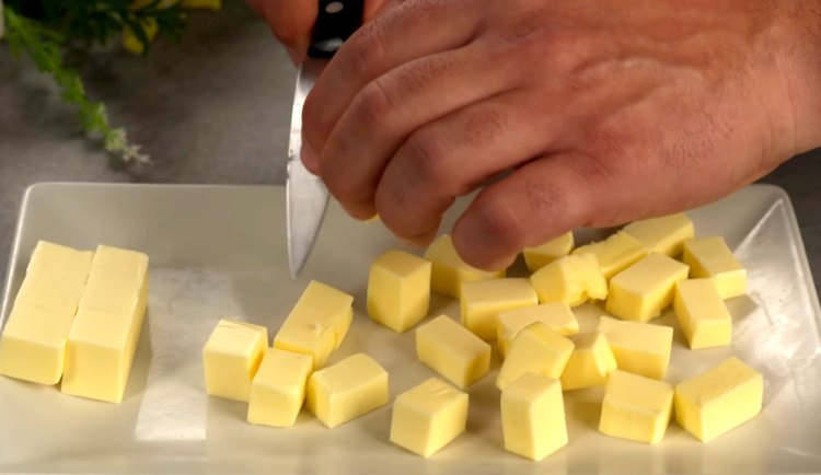 Mientras tanto, corta en daditos los 60 gramos de manteca adicional.
