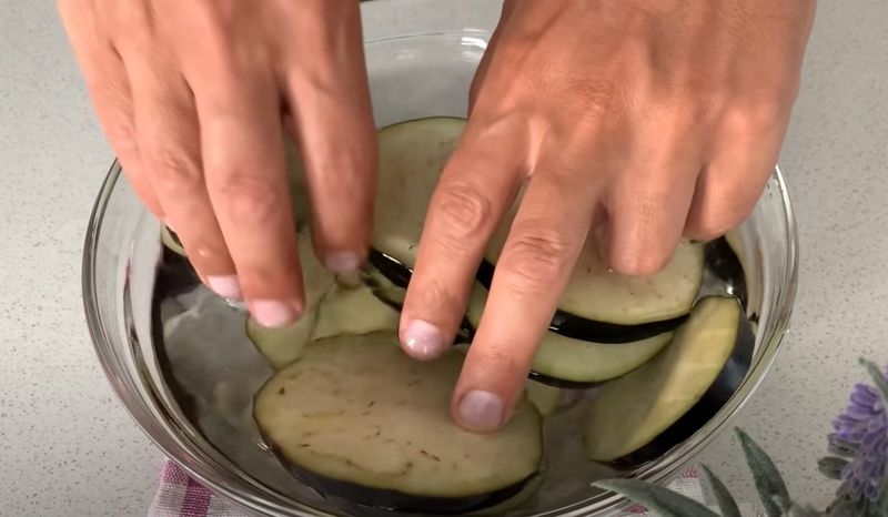 -Preparación de las berenjenas: Comienza lavando la berenjena y cortándola en rodajas de aproximadamente 1 cm de grosor. Salpica ligeramente las rodajas con sal y deja reposar durante unos minutos. Esto ayudará a que la berenjena suelte su agua de vegetación, lo que resulta en una textura más crujiente al cocinarla.-