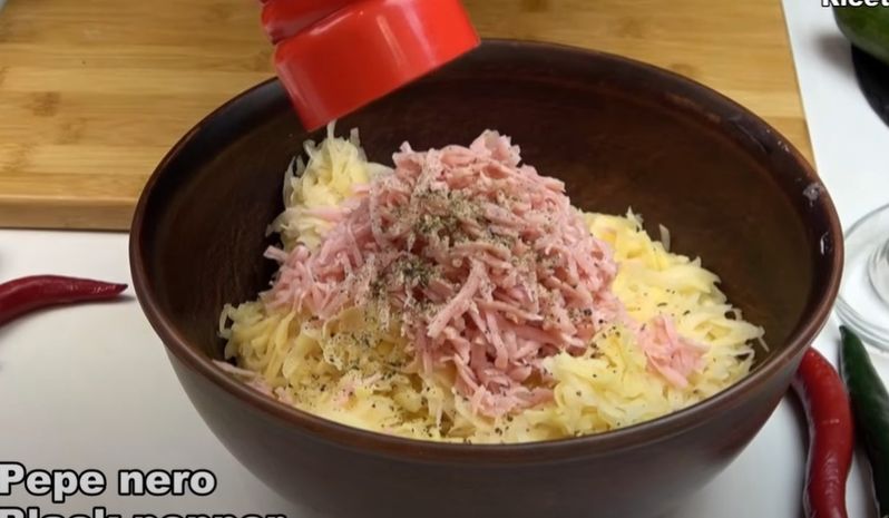 En esta receta, utilizaremos un rayador para cortar las patatas y el jamón en lugar de cortarlos en trozos. Esto le dará una textura única y hará que los ingredientes se integren mejor en la mezcla de huevo y harina. Además, el uso de jamón cocido y queso le dará un sabor adicional que seguramente disfrutarás.