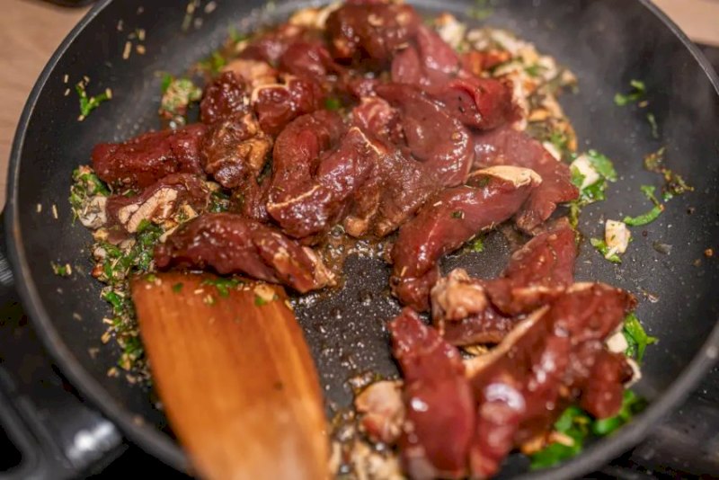 -Cocinar la carne en la sartén caliente hasta que esté dorada y cocida por ambos lados, aproximadamente 3-4 minutos por cada lado.