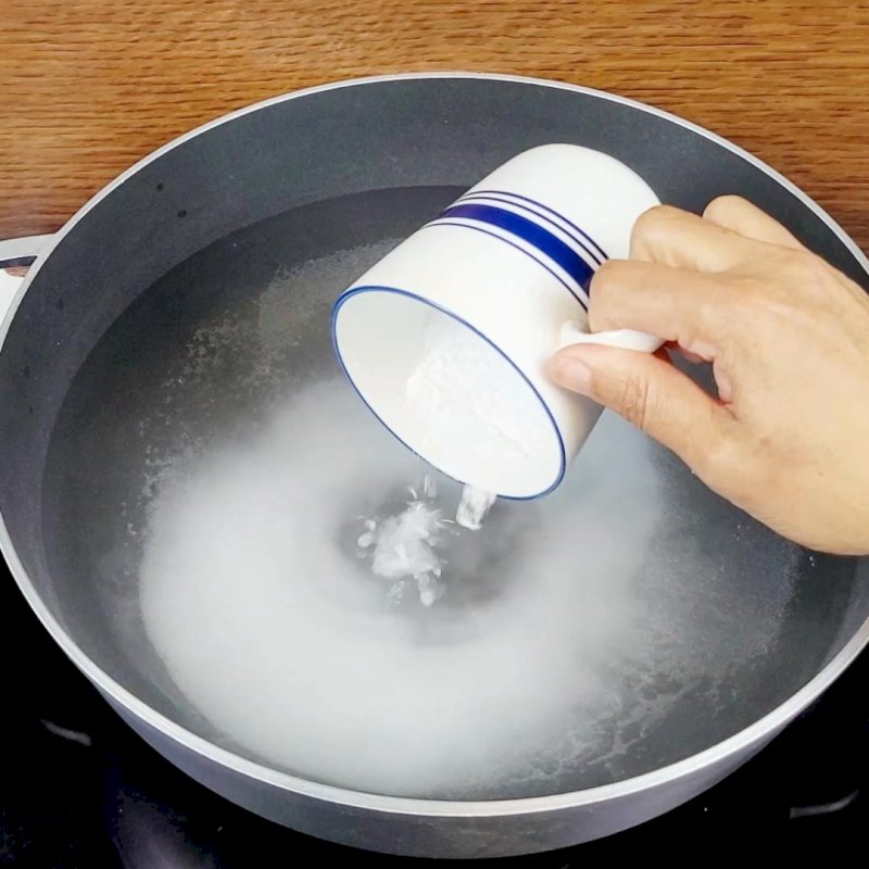 -Agrega una generosa cantidad de sal y bicarbonato de sodio al agua hirviendo.