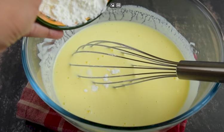 -Incorporar la maicena: Tamiza la maicena sobre la mezcla de yogur y huevo. Continúa batiendo la mezcla hasta que la maicena esté completamente incorporada y no haya grumos.